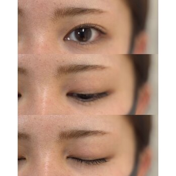 右と左でまぶたの厚みが違い、まつ毛の上がり方に差があるお客様もいらっしゃいます。そんなお悩みにも丁寧に対応し、お似合いのデザインをご提案しています♪